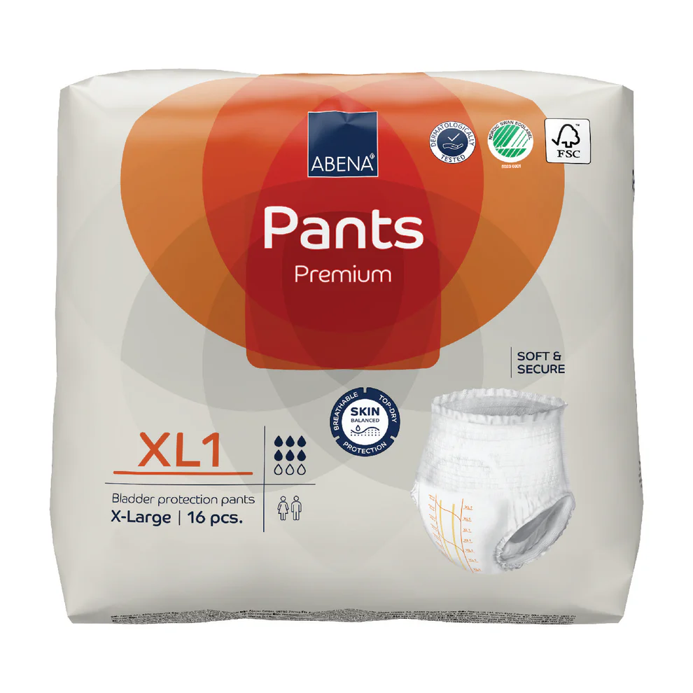 Abena Pants Premium XL est une gamme Premium de culottes jetables qui peuvent être portées comme des sous-vêtements normaux avec des niveaux d’absorption couvrant un large éventail de besoins. Les produits sont fabriqués dans un matériau respirant et ultra doux pour un confort optimal. La ceinture avec un grand nombre de fils lycra offre un ajustement sûr et ajusté, ce qui la rend idéale pour un style de vie actif. Le noyau haute performance doté de la technologie Top-Dry garantit l’intégrité de la peau et des soins optimaux de la peau en gardant la zone exposée confortable et sèche même après plusieurs mictions. La combinaison de barrières contre les fuites (barrières longitudinales et transversales) et d’élastiques offre une protection contre les fuites à 360 degrés autour du produit. Ces fonctionnalités aident à protéger la peau et à maintenir un équilibre naturel du pH cutané. Le système anti-odeurs minimise les odeurs désagréables. L’indicateur d’humidité avec échelle graduée guide l’utilisateur et le gardien vers le produit ayant le niveau d’absorption approprié. Les produits testés dermatologiquement ont reçu l’écolabel Nordic Swan.