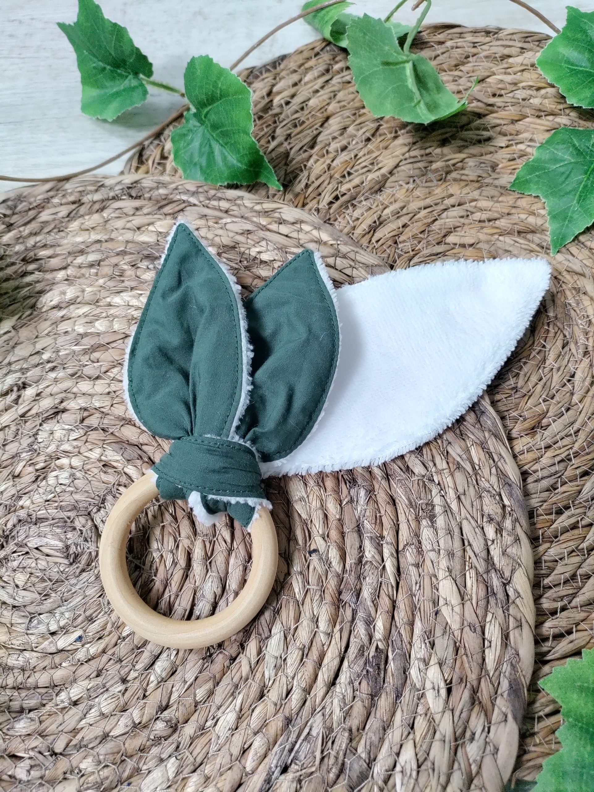 🌱 Les tissus sont certifié Oeko-tex et Biologiques. L’anneau utilisé est en bois non traité.
