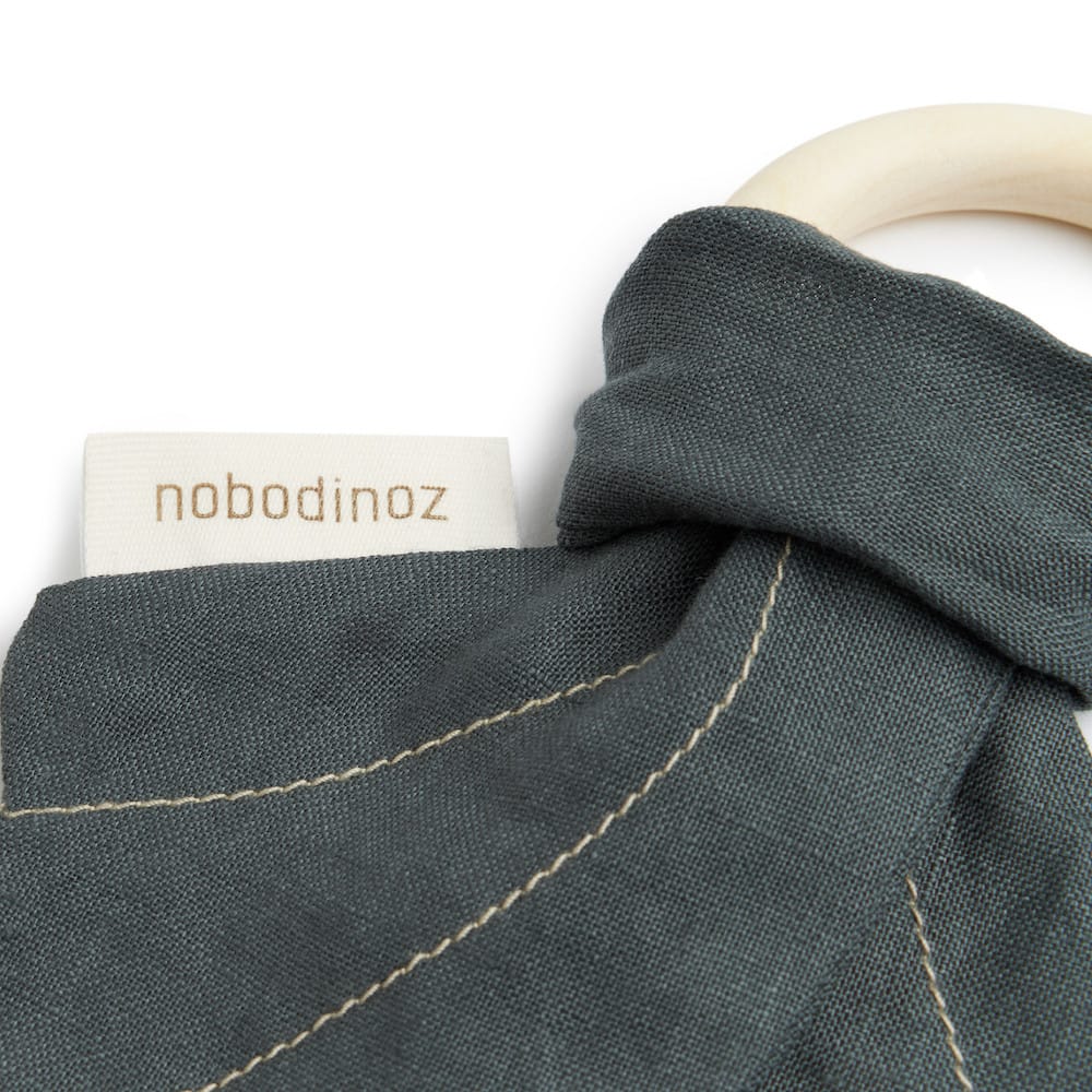 - Composition : 100% lin français – anneau en bois de hêtre – coutures contrastées – emballé dans un emballage 100% biodégradable et sans plastique.