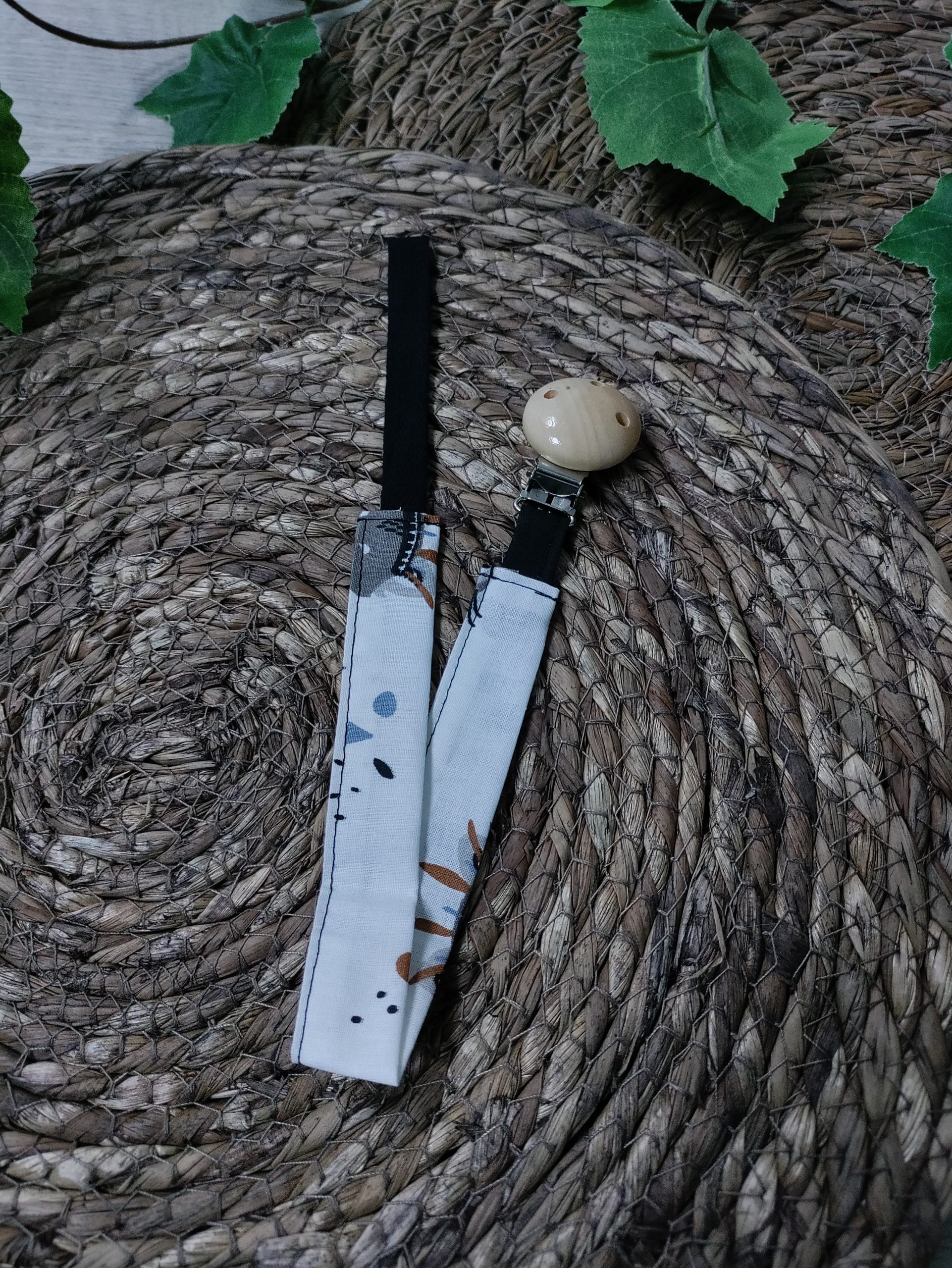 Fabriquée à la main avec soin, cette attache allie sécurité, confort et esthétique. Douce pour la peau de bébé, elle s’attache facilement aux vêtements grâce à son clip robuste, sans risque pour les tout-petits.