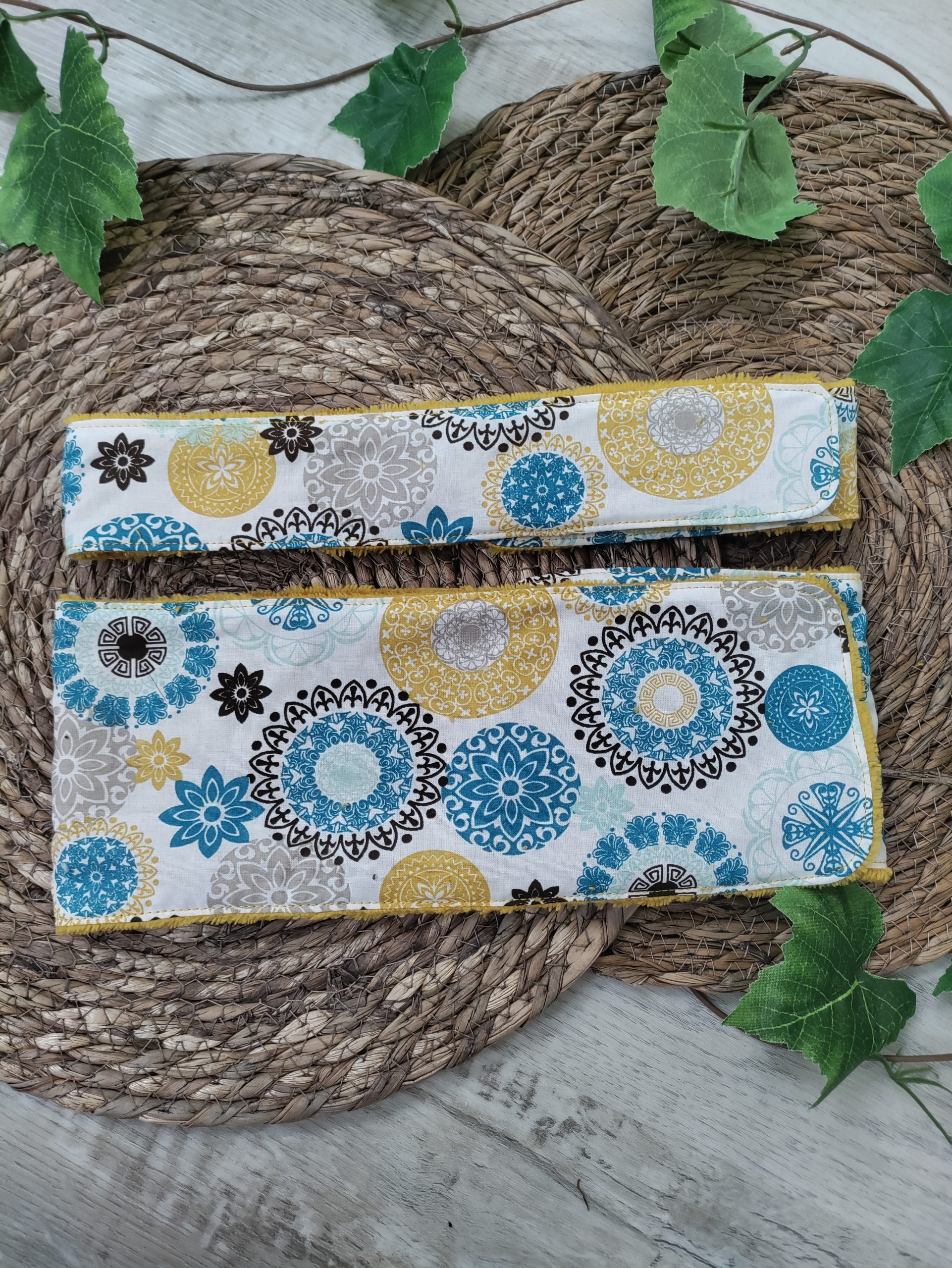 Composition : Motif : 100% Coton Eponge Bambou : 60% Viscose, 30% Polyester, 10% Coton Scratch : 100% Polyamide Dimensions : Large : environ 70cm x 12cm Fin : environ 70x6cm Entretien : Lavage : en machine à 30° ou à la main (Astuce : ajouter 2 à 3 cuillères à soupe de bicarbonate de soude dans votre lessive ou directement dans votre machine afin d’adoucir les fibres en éponge) Pas de séchage en machine Repassage uniquement sur le tissu à motif en coton