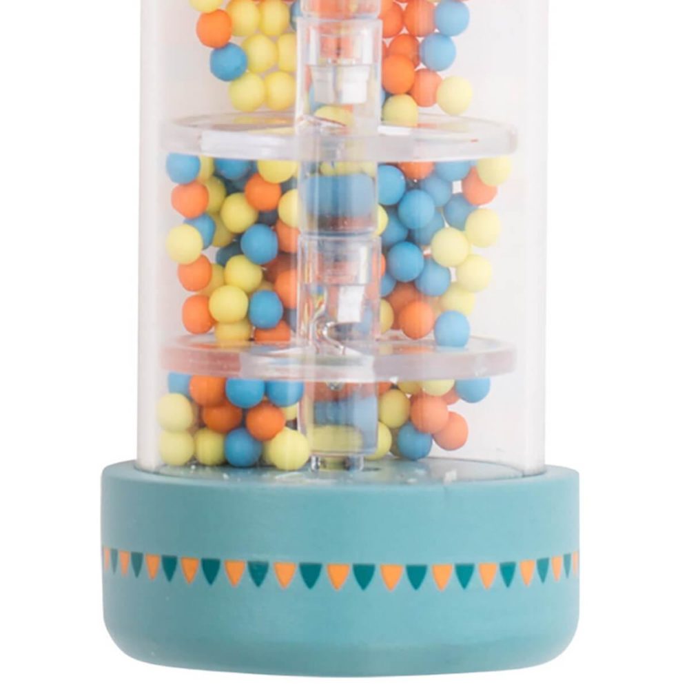 Tout simplement fascinant! Si vous déplacez le bâton du faiseur de pluie, le crépitement de la pluie peut être entendu. Si vous le tournez très délicatement cela captera l’attention de votre bébé pour le calmer. Un objet à garder tout prêt et surtout en promenade.