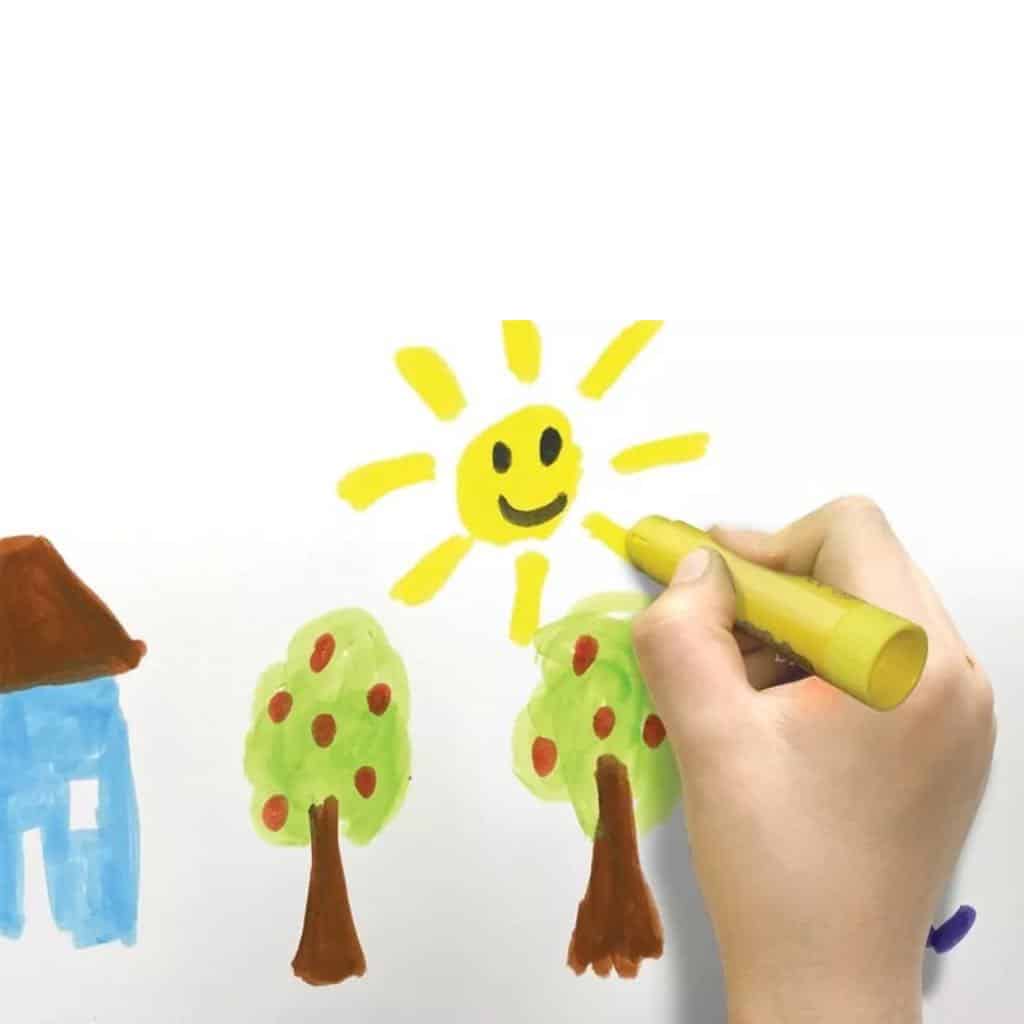 Un crayon gouache qui laisse trace facilement Un effet peinture très intéressant pour de nombreuses activités manuelles Idéal pour une activité qui ne demande pas de nettoyage ensuite pour l’adulte La mine est rétractable Se lave très facilement sur les mains et les vêtements Les couleurs sont vives et couvrantes Permettent à l’enfant de vivre des premières expériences et de s’exprimer librement autour d’un dessin