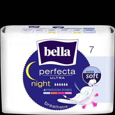 Serviettes hygiéniques Bella Perfecta ultra night extra soft, ultra-minces, imperceptibles même sous une tenue très ajustée. Protège parfaitement la peau contre les irritations, assurant un confort d’utilisation. Recommandé pour les saignements très abondants – de jour comme de nuit.