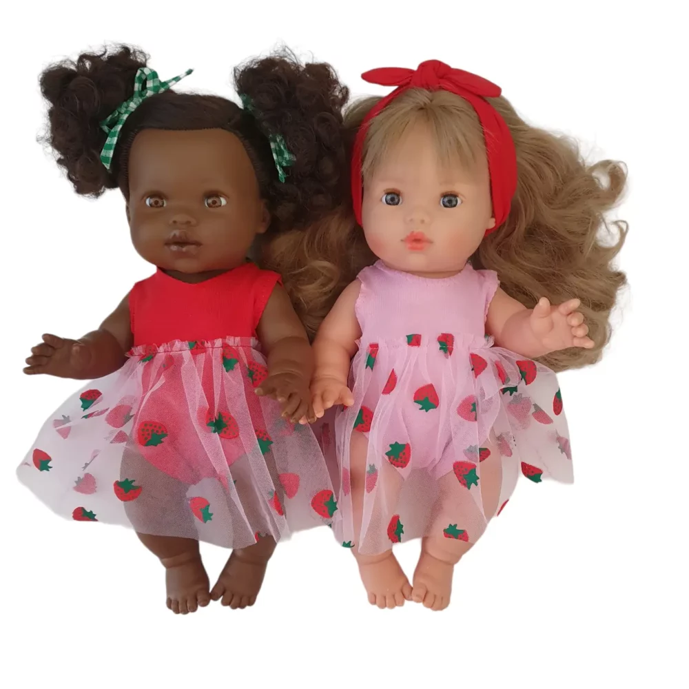 Un vêtement qui sent bon l’été, les éclats de rire et les goûters dans le jardin — pour que chaque poupée devienne la plus adorable des petites fraises dansantes.