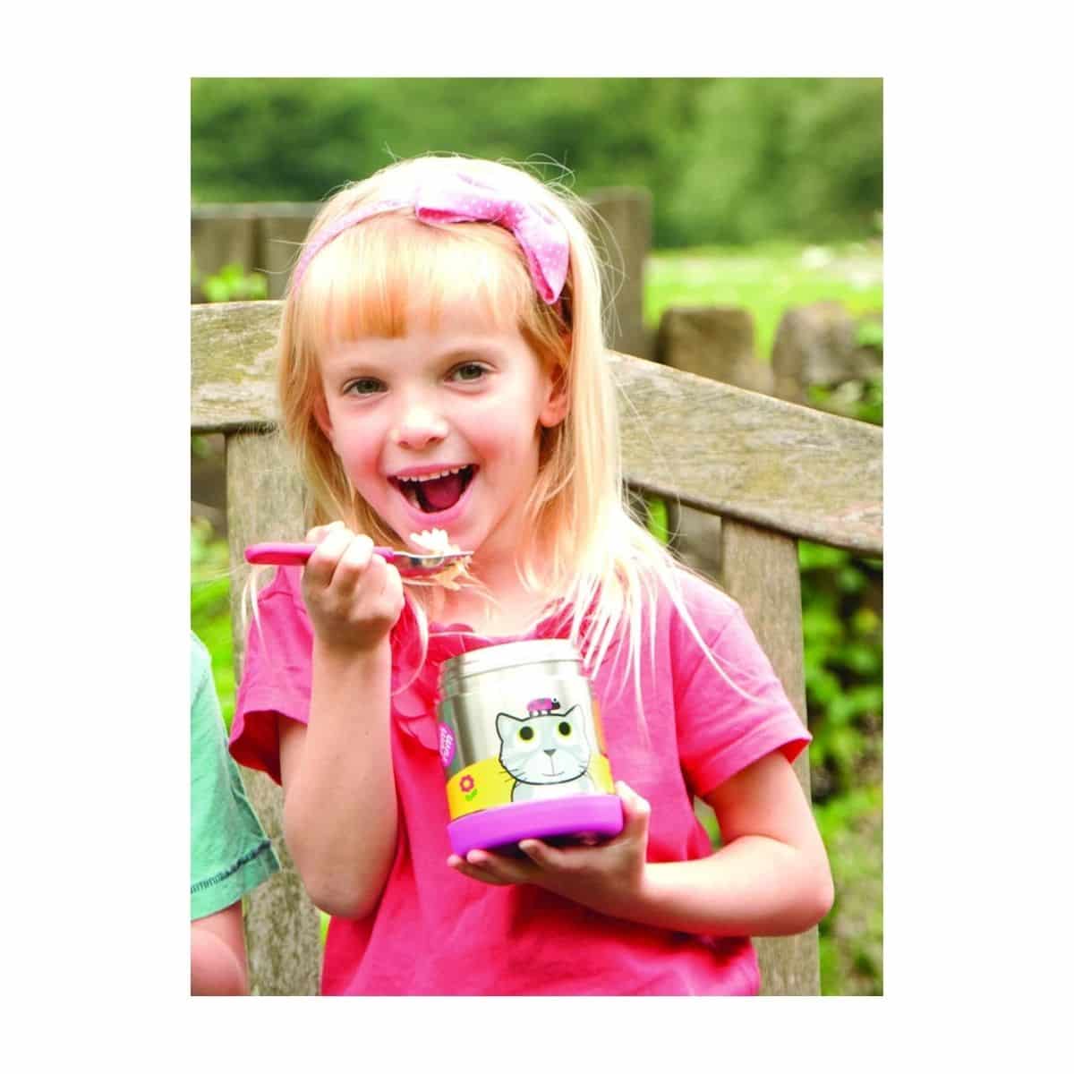 Parce que cette boîte repas isotherme Rose maintient à température le chaud comme le froid Parce que sa taille est facilement transportable Parce que son design et ses couleurs sont sympas Parce qu’elle est facile à laver Parce qu’elle a des couverts assortis