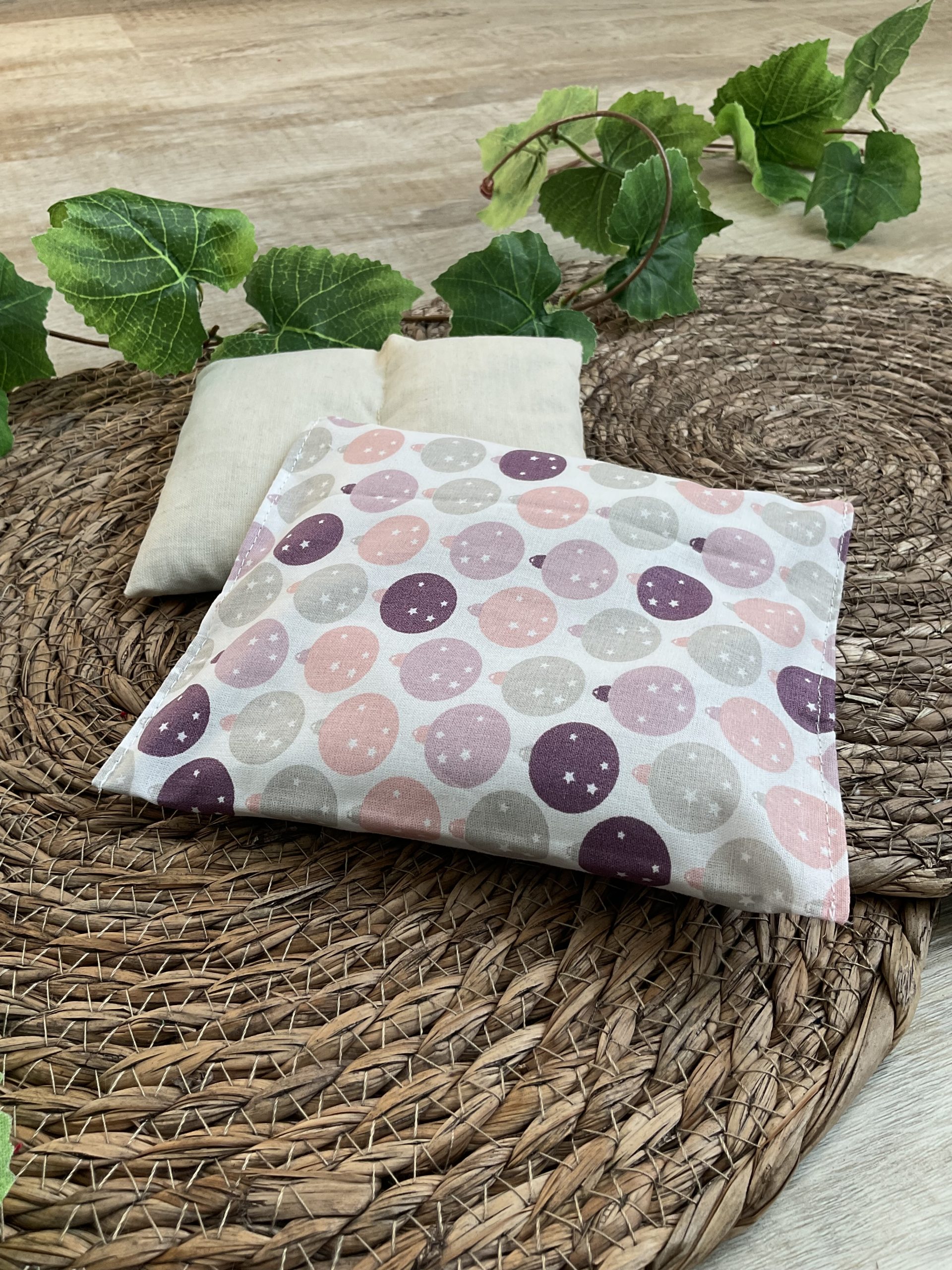Dimension :  environ 16×14 cm Composition :  – Housse : 100% Coton – Bouillotte : 100% Coton / A base de graine de tournesol bio Entretien :  – Lavage uniquement de la housse à 30° – Pas de séchage en machine – Repassage uniquement de la housse à chaleur moyenne
