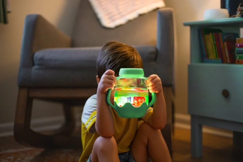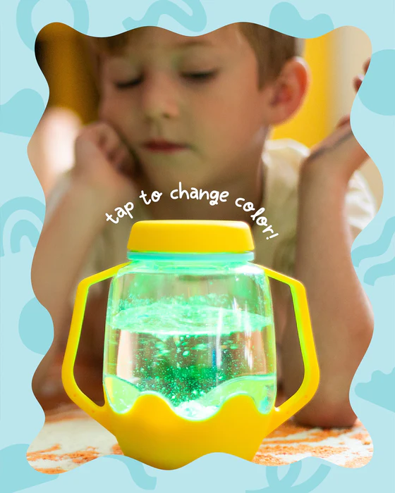 Bouteille sensorielle lumineuse – Sensory Play Jar Light Up | Jellystone Une expérience sensorielle magique ! Cette jarre lumineuse s’illumine doucement d’une pression, captivant l’attention et aidant les enfants à se recentrer. Parfaite pour les temps calmes, les coins sensoriels ou les moments de détente. À personnaliser à l’infini avec des éléments colorés, brillants ou naturels : chaque jar devient une création unique, mêlant lumière et imagination.