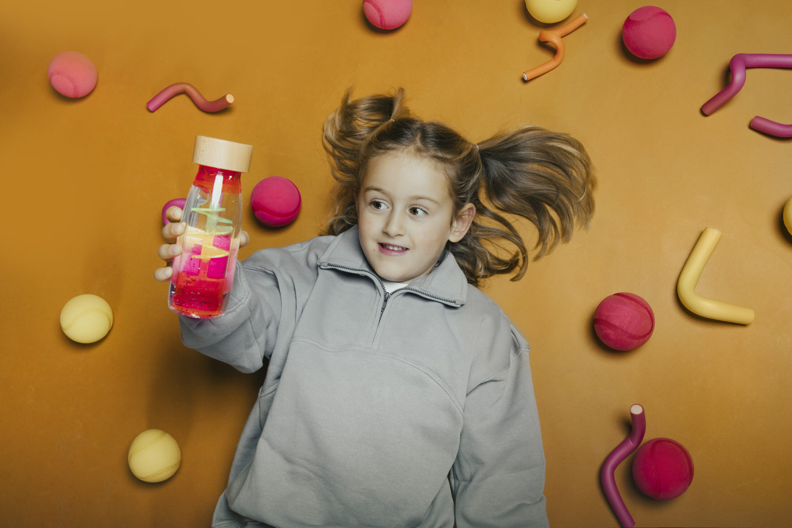 PETIT BOUM Idéale pour développer les sens de vos enfants. elle s’adapte à tous les âges dès 3 mois. La bouteille stimulera la coordination main et oeil lorsque vous l’agitez ou la retournez. Les couleurs que l’on retrouve permettent de stimuler la vue dès très jeune. Les bulles colorées qui descendent favoriseront la détente. Elle sera parfaite pour accompagner les temps calmes. La bouteille rappelle les sablier ou encore les lampes à lave.