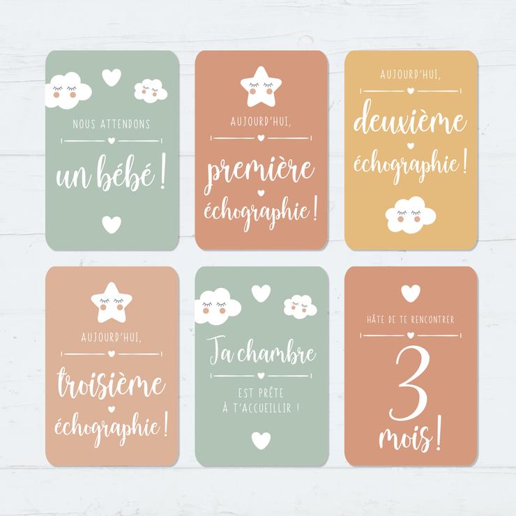 « MA GROSSESSE » – LOT DE 15 CARTES Avec les cartes étapes, capturez en photo et immortalisez ces instants précieux lors des différentes étapes d’évolution de votre grossesse. Format: 14,8 x 10,5 cm Papier: texturé, 300 g Les coins sont arrondis Le verso vous permet d’écrire facilement et pas à pas l’histoire ou les anecdotes de votre grossesse. Les cartes étapes sont soigneusement emballées dans une boîte.