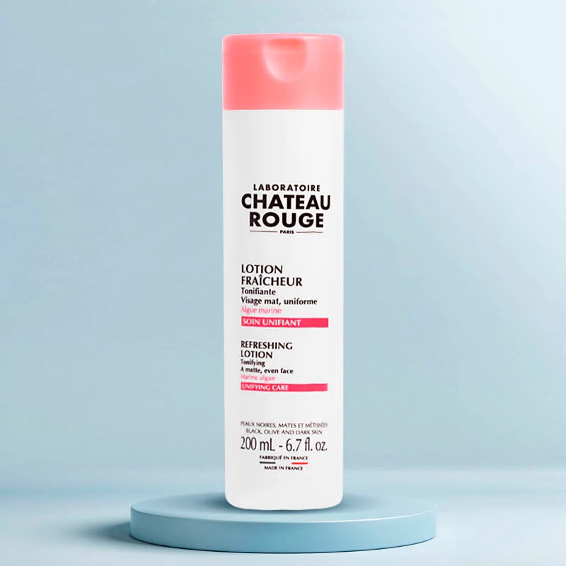 La Lotion Fraîcheur 200ml de Château Rouge est spécialement formulée pour les peaux noires, mates et métissées. Elle offre trois actions principales : rafraîchir, tonifier et éclaircir la peau. Enrichie en actifs éclaircissants d’origine marine et végétale, cette lotion contribue à réduire l’apparence des taches pigmentaires et à unifier le teint.