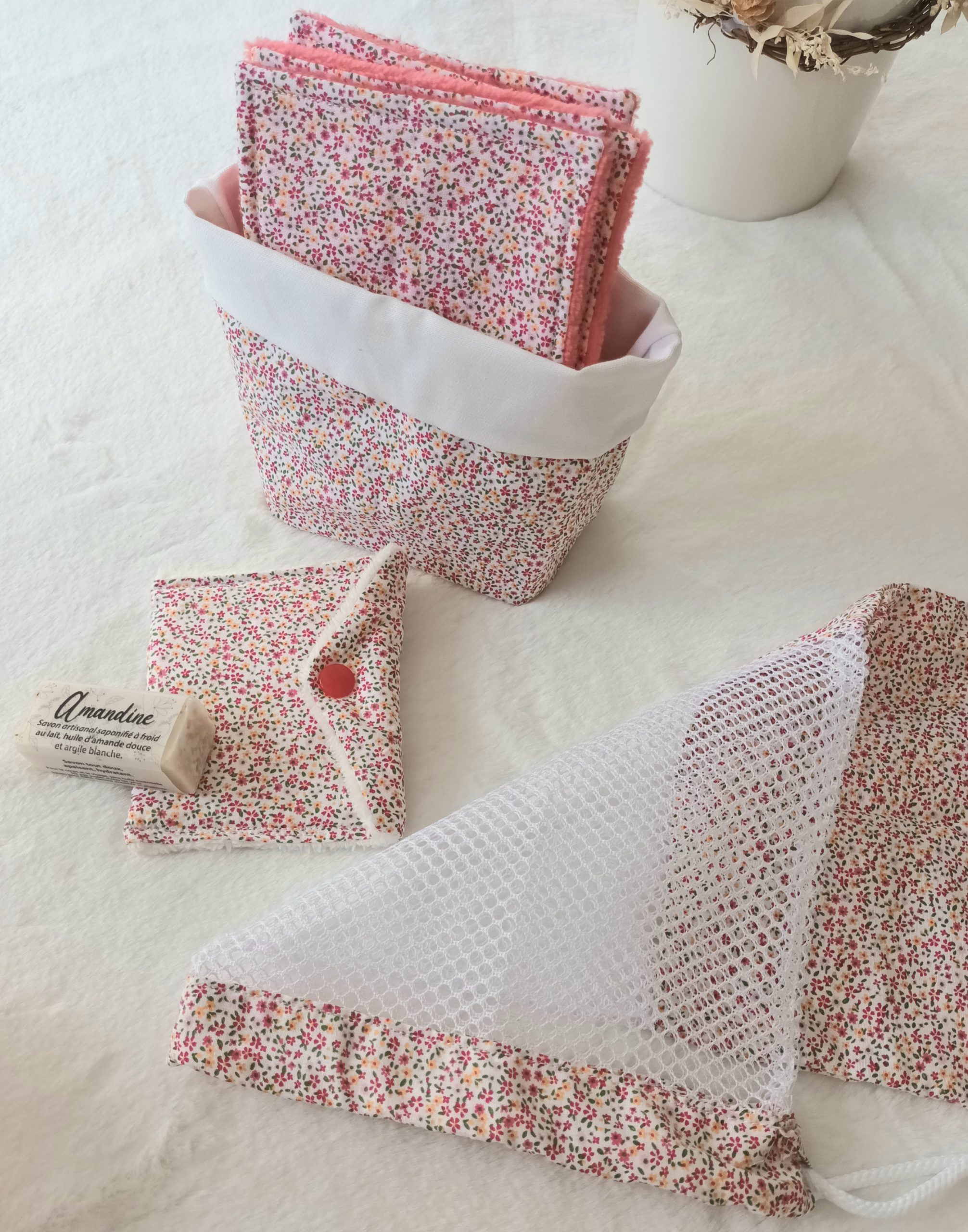 Un petit cadeau Ă faire? le coffret bien-ĂȘtre est le cadeau idĂ©al! ComposĂ© d’un lot de 5 cotons lavables et son panier de rangement, un savon au lait d’amande et sa pochette de transport et un filet de lavage.