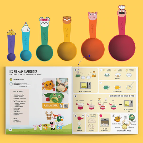 Le premier coffret Chefclub Kids invite les enfants en cuisine ! Vos enfants vont s’amuser à réaliser des recettes ludiques en autonomie grâce à notre système innovant de tasses à mesurer. Les recettes illustrées en pas-à -pas et faciles à suivre éveilleront leurs papilles et leur imaginaire. Ils retrouveront aussi la vidéo de la recette avec les QR codes pour encore plus d’inspiration.