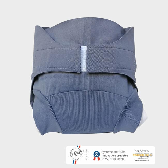 Couche lavable innovante et facile à utiliser, système anti-fuite breveté, confort optimal pour bébé.