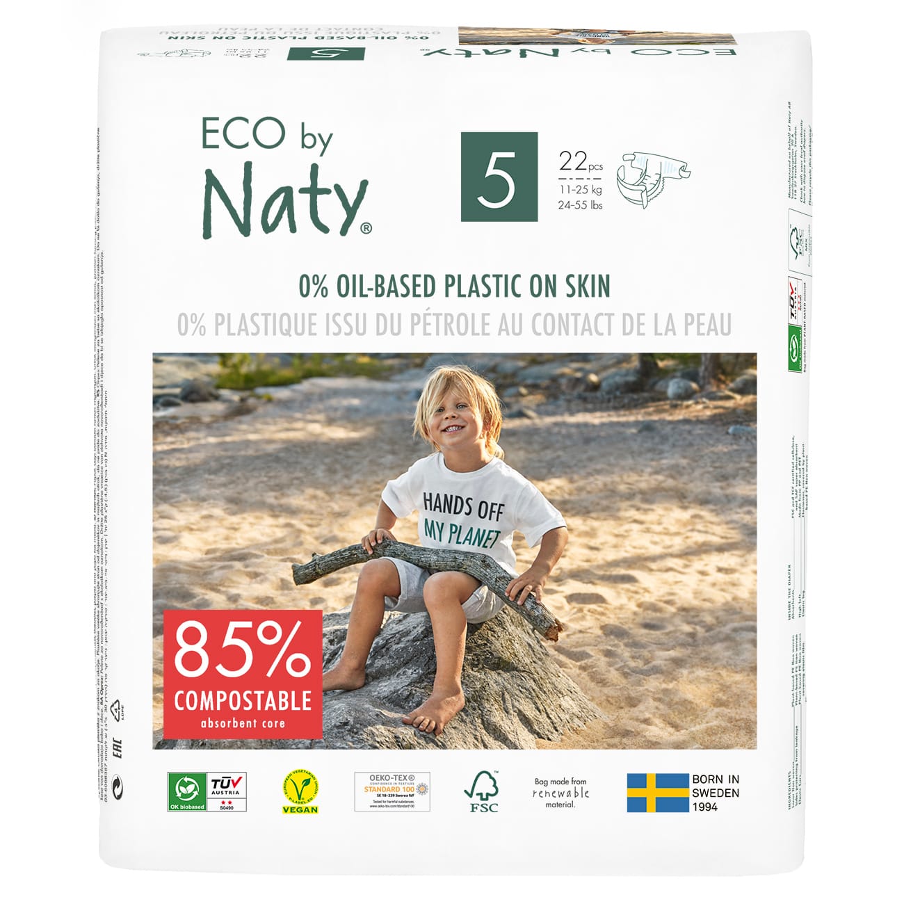 Couches jetables écologiques taille 5 junior (11-25kg) 22 pièces – Naty