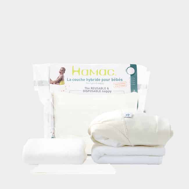 1 couche de couleur crème + 1 absorbant lavable en microfibre + 2 absorbants jetables + 3 voiles jetables.