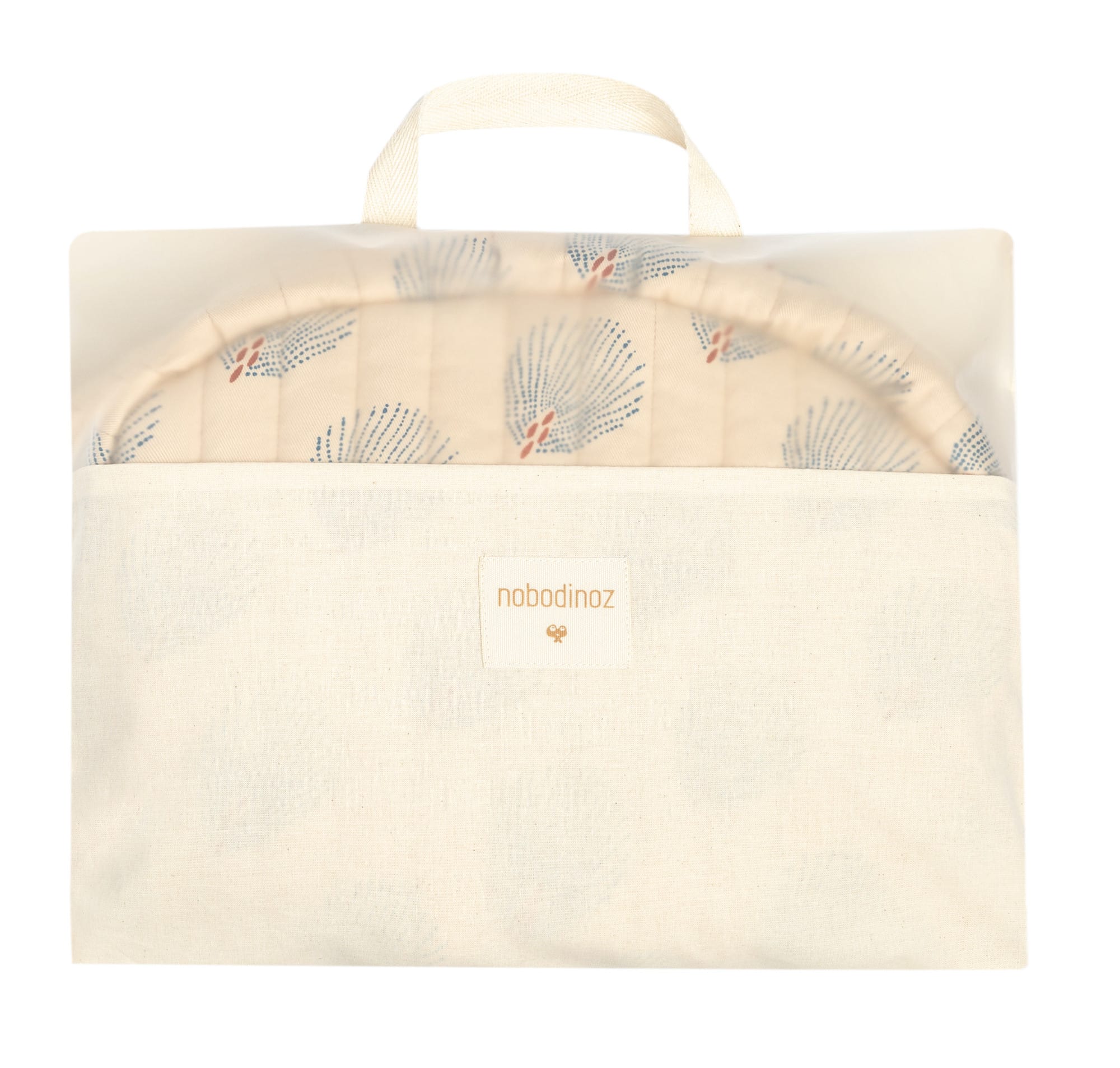 - Composition extérieure : 100% coton biologique – remplissage : 100% polyester Okeotex – avec sangles velcro