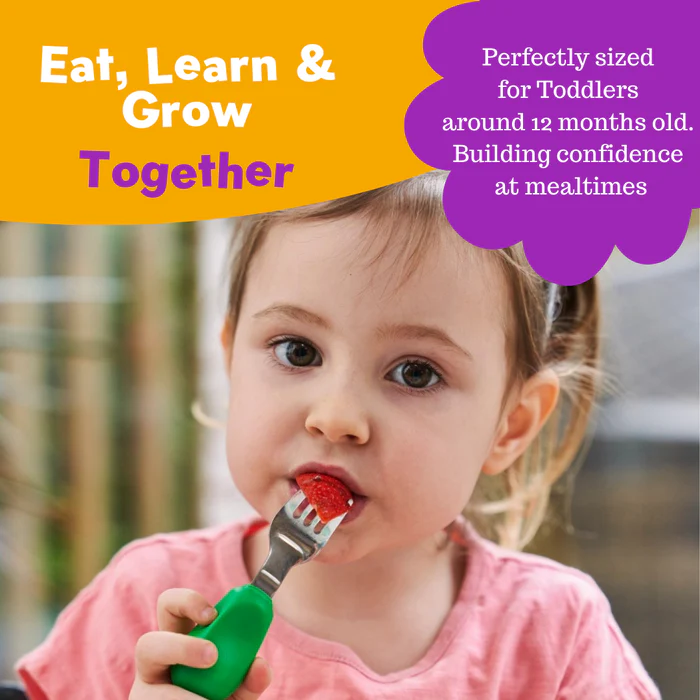 Les ensembles de couverts, fourchettes et cuillères pour tout-petits sont conçus pour les tout-petits prêts à manger tout seuls. Les ensembles fourchette et cuillère en acier inoxydable sont conçus pour être utilisés indépendamment par les bébés et les tout-petits à partir de 12 mois environ. Les ensembles de couverts, de fourchettes et de cuillères pour tout-petits sont spécialement conçus et façonnés pour soutenir le développement de la préhension des enfants tout en renforçant leur confiance à l’heure des repas. L’utilisation de la prise Palmar peut bien fonctionner pour les objets plus gros, mais les bébés ne pourront pas saisir des objets plus petits, comme les pois et les raisins secs, jusqu’à ce qu’ils développent la dextérité digitale nécessaire à la prise en pince. Cela se produit lorsqu’ils ont environ 9-10 mois. La pince utilise l’index et le pouce ensemble pour « pincer » ou saisir un objet plus petit. La conception ergonomique de notre ensemble de couverts pour tout-petits encourage la progression de votre enfant dans le développement de la préhension, aidant à renforcer les muscles des mains et à favoriser le mouvement naturel de la coordination des gauchers et des droitiers en préparation de l’étape suivante.