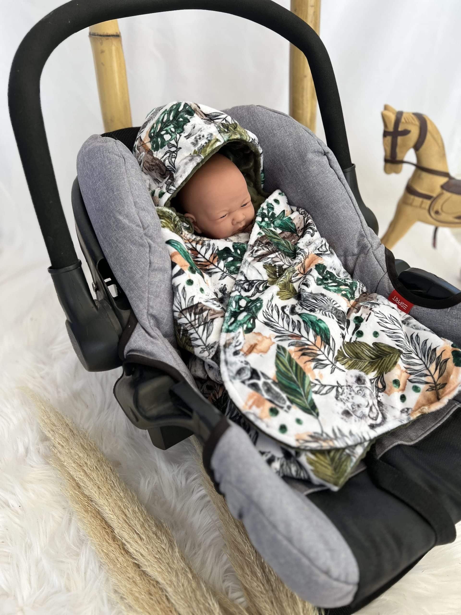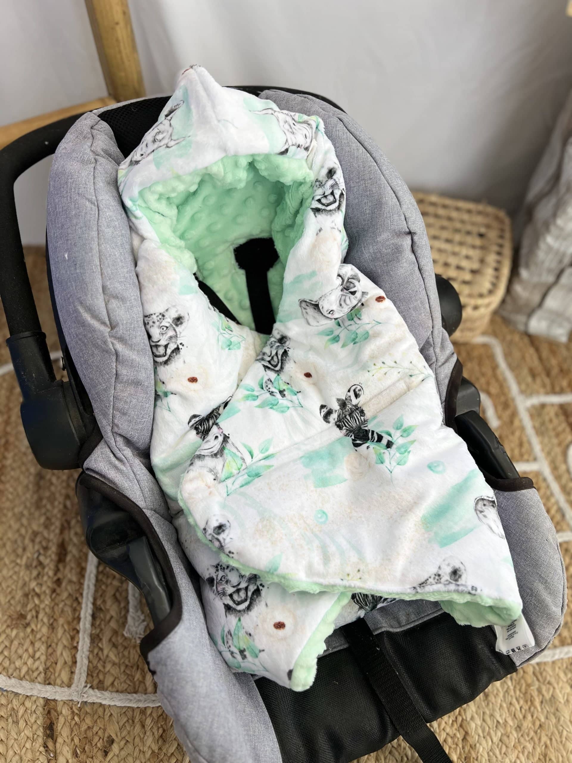 Plongez dans un univers tendre et chaleureux avec cette couverture cosy bébé aux motifs savane, une création exclusive Les Créa de Jenni, pensée pour envelopper votre tout-petit de douceur lors de toutes vos sorties.