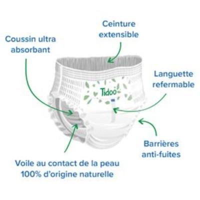 Tidoo Night&Day, réduit les fuites jusqu?à 12H. Cependant, pour améliorer le confort de l?enfant, changez votre enfant avant et après le coucher.