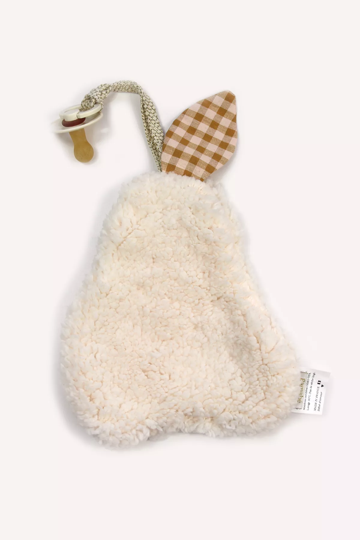 Barnabé Aime le Café Un joli doudou tou doux en moumoute, en forme de poire avec une attache pour la tétine ou un autre jouet. Une superbe idée de cadeau de naissance.