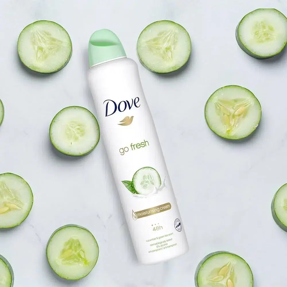 Le déodorant DOVE Go Fresh offre une sensation de fraîcheur durable avec son parfum subtil de concombre et thé vert. Il protège jusqu’à 48 heures, tout en prenant soin de la peau avec ¼ de crème hydratante.