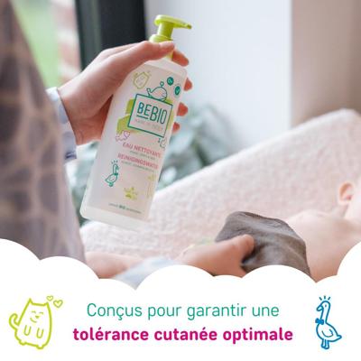 L’eau nettoyante bébé Bebio, est une eau micellaire qui nettoie sans rinçage le visage, le corps et le siège. Elle laisse la peau propre, douce et parfumée. Cette eau nettoyante pour bébé est testée dermatologiquement et certifiée bio, idéale dès la naissance.