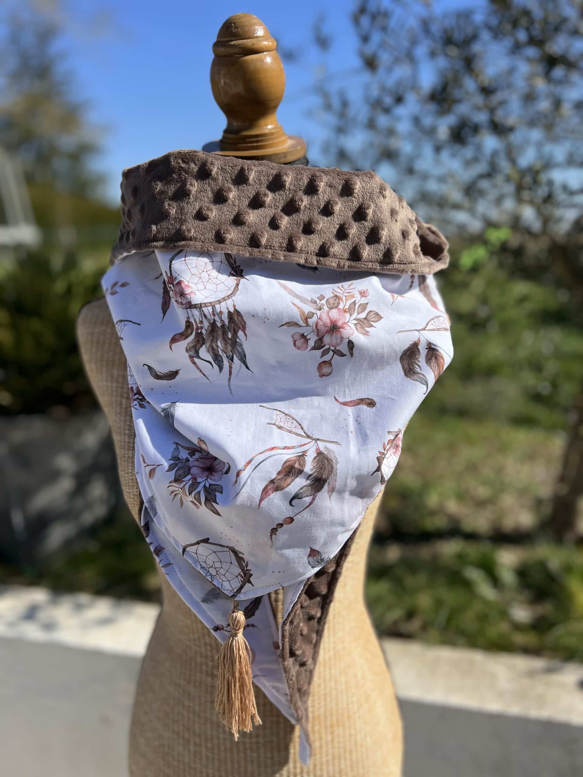 Ajoutez une touche bohème et élégante à votre tenue avec cette magnifique écharpe cousue main. Confectionnée avec un tissu en coton imprimé attrape-rêves et un tissu doudou ultra-doux marron taupe, elle vous enveloppe de chaleur et de confort tout en sublimant votre style. ✨ Caractéristiques :✔️ Matières : Coton imprimé et tissu doudou texturé ultra-doux✔️ Dimensions : 110 cm de long x 50 cm de large✔️ Détails : Pompon décoratif pour une touche raffinée✔️ Entretien : Lavage en machine à 30°C – Pas de sèche-linge Craquez pour cette pièce unique et faites entrer le printemps dans votre dressing ! 💫…