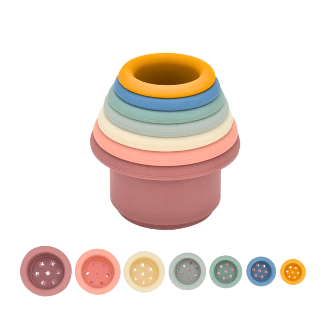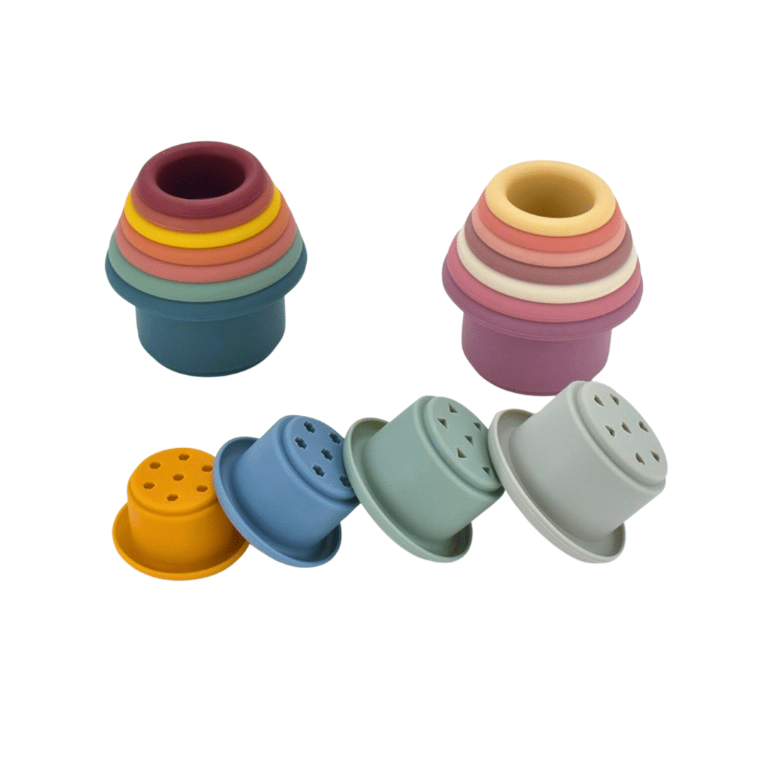Notre ensemble de 7 jouets de bain bébé est constitué de formes colorées et souples en silicone de haute qualité qui aident les bébés à s’amuser en prenant leur bain. Les jouets empilables sont amusants à utiliser et faciles à saisir pour les petites mains des bébés. Fabriqués avec des matériaux de qualité, ces jouets sont sûrs pour les bébés et ne contiennent pas de BPA ni de phtalates.