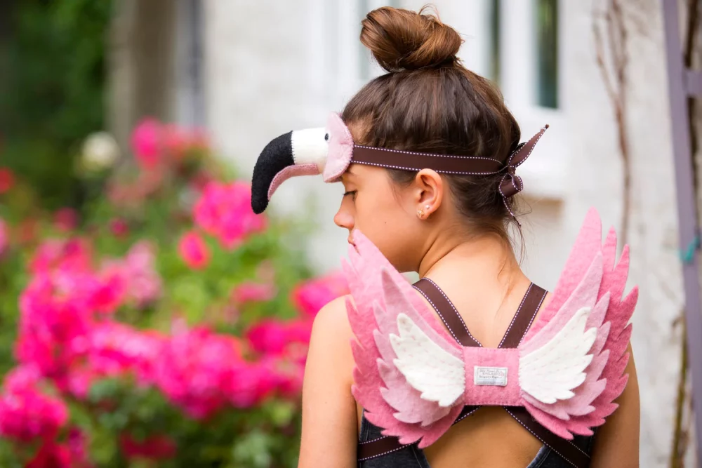 Fabuleux et fru fru, Alice Flamingo est notre magnifique coiffe de tête de flamant rose feutrée à la main avec des ailes à nouer assorties. Ces ensembles d’habillage accrocheurs sont parfaits pour un jeu imaginatif.