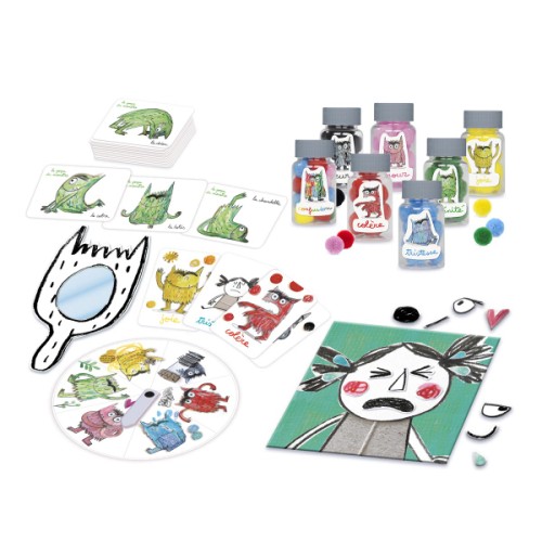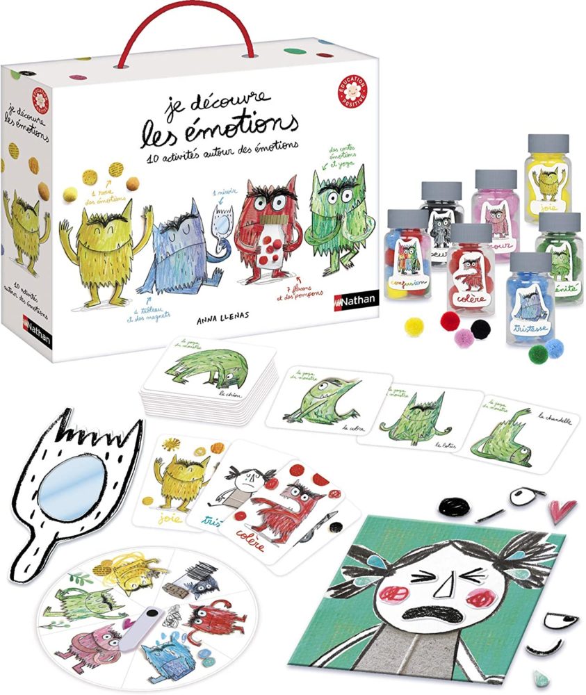 Adapté de l’album à succès » La couleur des émotions » d’Anna Llenas, Je découvre les émotions est un jeu qui apprend à votre enfant à gérer ses émotions à travers dix activités évolutives. Sa première rencontre des émotions se fait avec des cartes puis il apprend à s’observer et à mimer les émotions grâce au miroir du monstre ! Quand il grandit, des flacons à remplir de pompons l’invitent à associer une couleur par émotion. La roue des émotions l’aide ensuite à s’exprimer sur ses émotions pour progressivement les identifier, les comprendre et les accueillir en toute sérénité. Sérénité qui sera à son paroxysme avec le yoga du monstre qui lui présente onze postures de relaxation ainsi que leurs bénéfices. Le petit plus ? Un guide pédagogique accompagne le parent avec des explications et les bénéfices concrets de chaque activité !