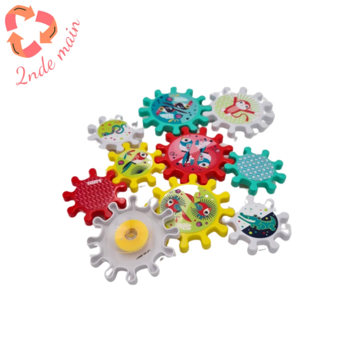 Les petits s’amuseront pendant des heures à découvrir tous les agencements possibles avec les dix pièces fournies ! Les engrenages, de tailles et de couleurs différentes, créent des effets visuels saisissants quand on les fait tourner tous ensemble.