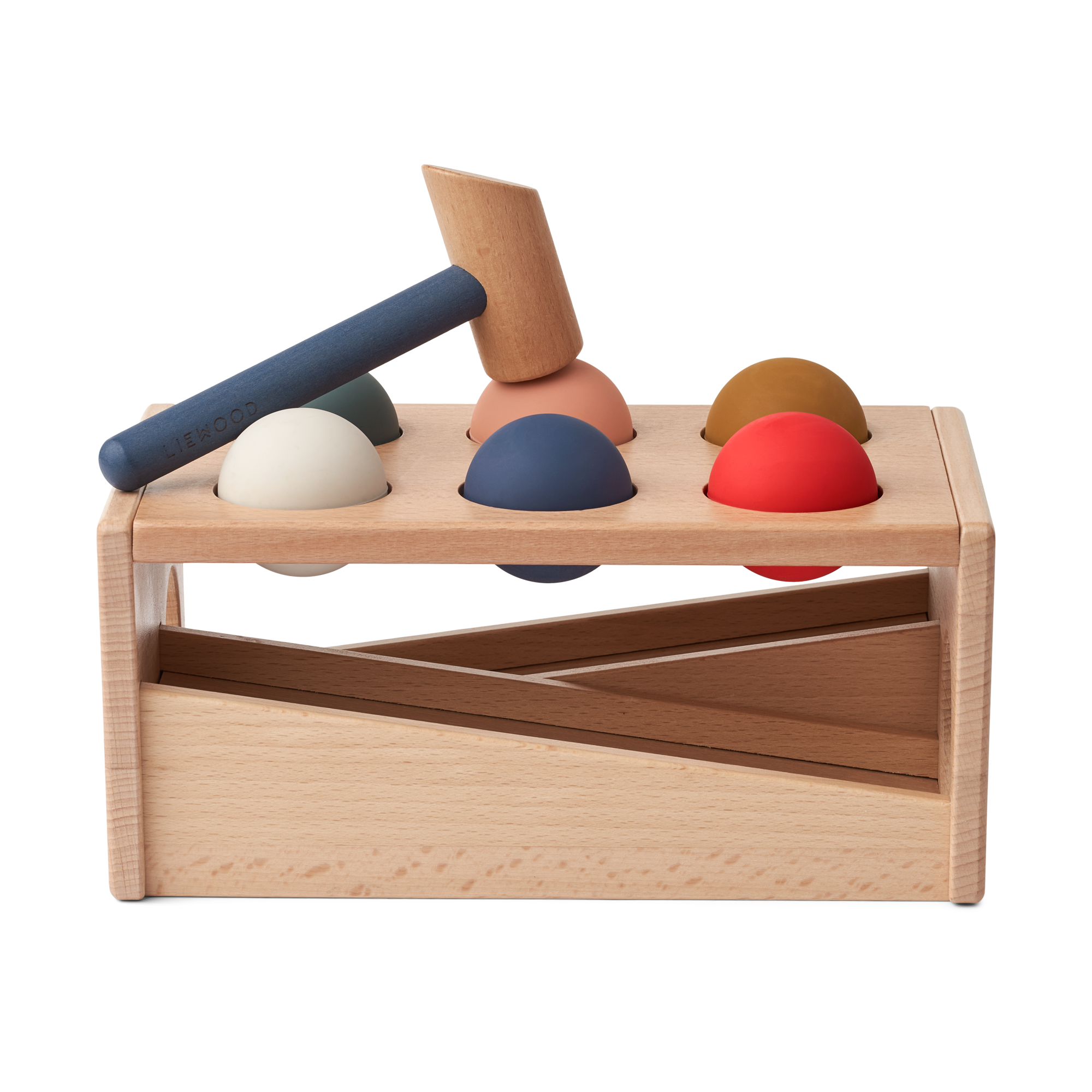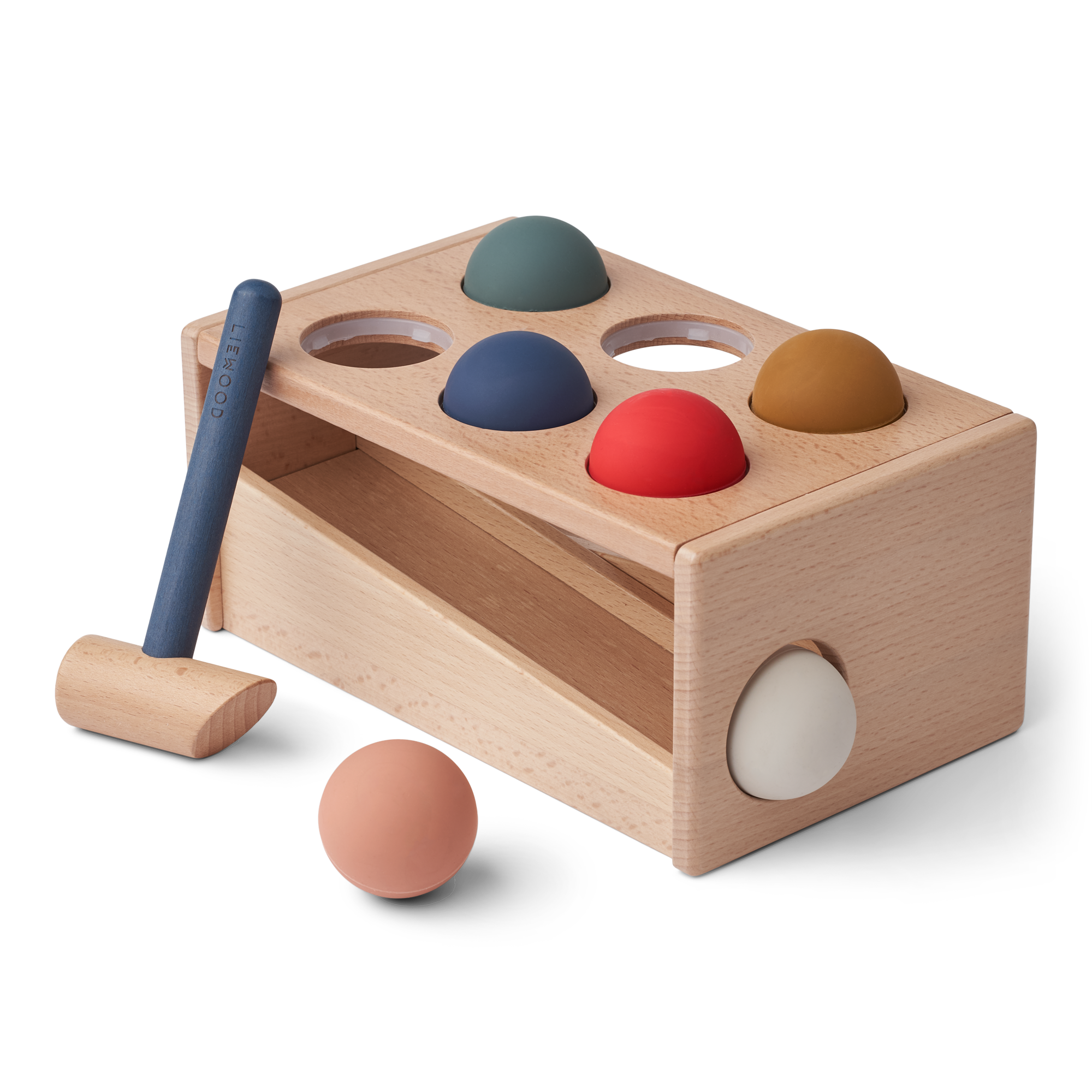 Liewood Banc à marteler, idéal pour apprendre à nos Minis à viser. Tapez sur les balles en silicone et elles tombe sur la rampe, i faudra alors la récupérer et recommencer. ce banc à marteler allie donc également une notion de coucou caché parfait pour apprendre la permanence de l’objet.