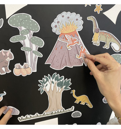 Le jeu se compose de 52 magnets illustrant un « monde des dinosaures » :