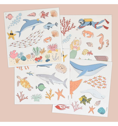 Plongez dans les profondeurs aquatiques et inventez vos propres histoires avec les magnets « sous l’océan ». Poissons, coquillages, coraux, plongeurs, sirène, trésor… mille et une histoires peuvent prendre vie sur tous supports magnétiques. Jeu ludique de 52 magnets.