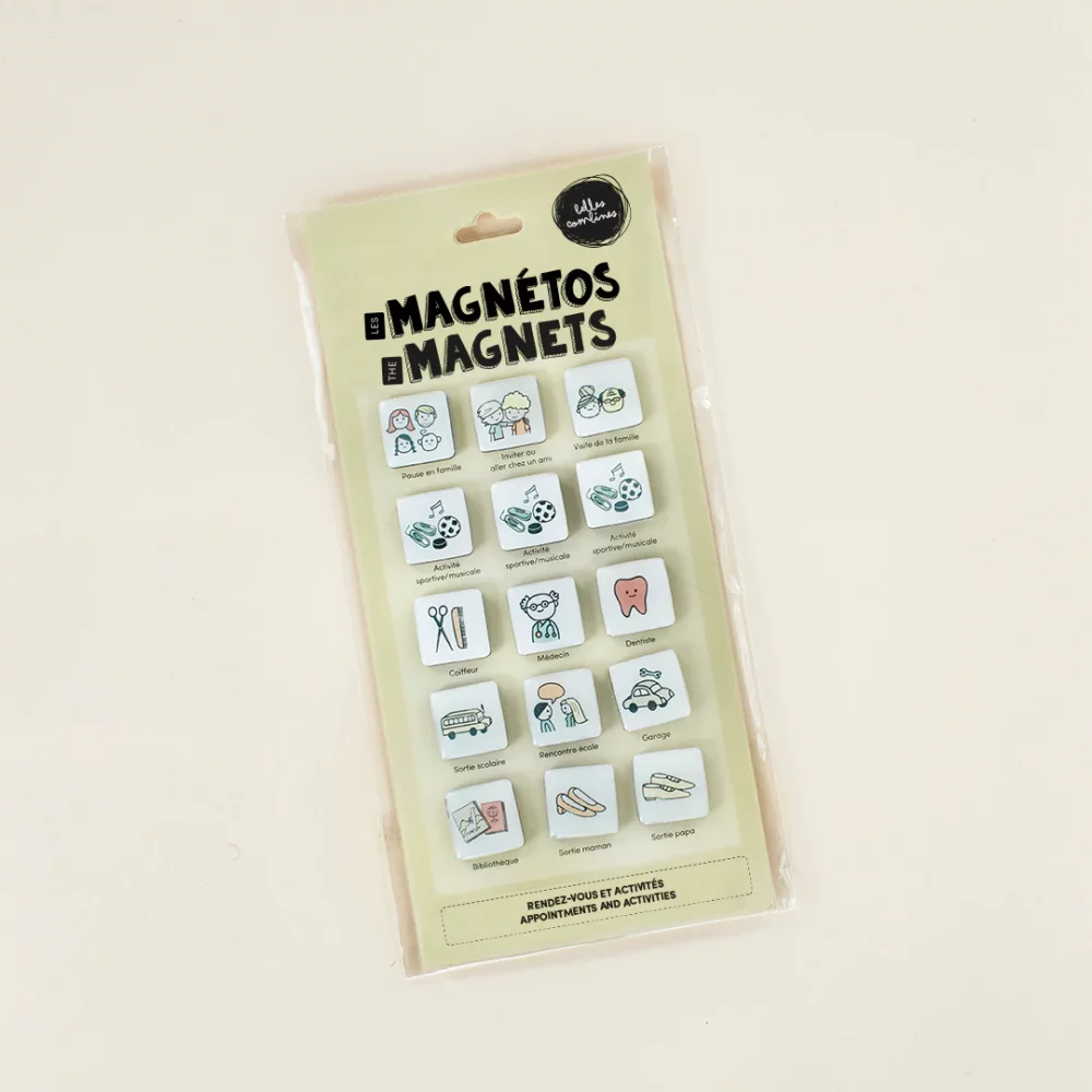 Une gamme complète de pictogrammes magnétiques et ludiques qui développeront l’autonomie des plus petits et le sens de l’organisation des plus grands … même de papa et maman ! Intégrez-les au planificateurs familiaux mensuel et hebdomadaire