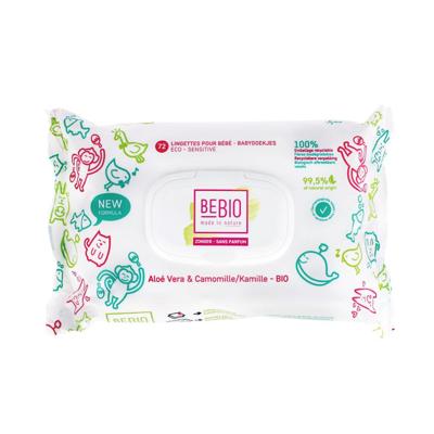Les lingettes bébé sans parfum Bebio, à l’aloé vera et à la camomille bio, nettoient en douceur et hydratent les peaux sensibles. Écoresponsables, elles sont 100% biodégradables et vegan.