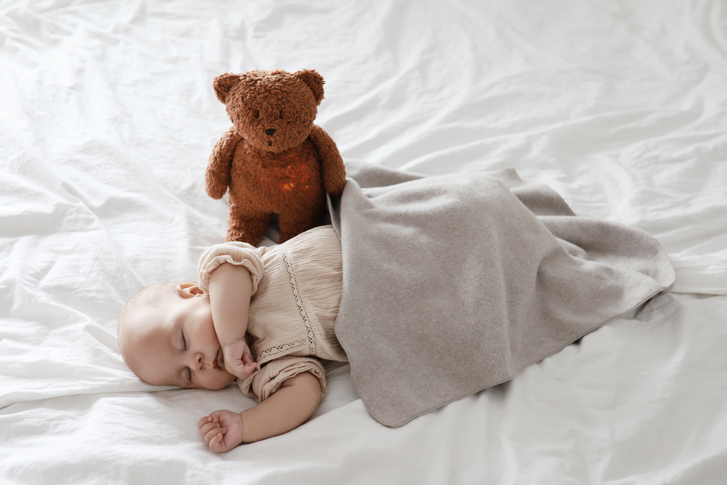 MOONIE Doudou, veilleuse et bruits blancs à la fois. Les sons proposés ont été sélectionnés en se basant sur la recherche pédiatrique et permettent à bébé de : S’endormir plus vite Dormir plus longtemps Limiter les pleurs et l’apaiser plus rapidement Participer à la routine du sommeil Calmer les coliques En coton Bio