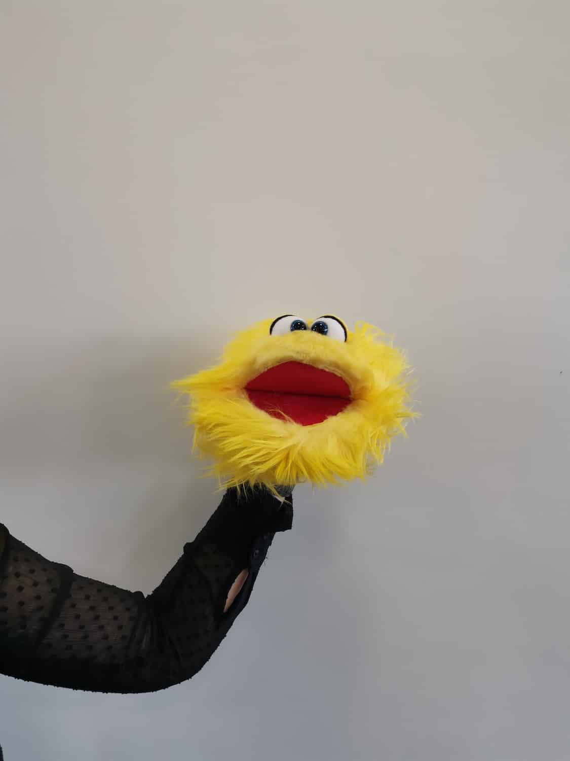 Idéal pour petites et grandes mains. Glisser la main dans l’ouverture au ventre ou au dos de l’animal pour atteindre la bouche articulable. Par le mouvement de la main la marionnette Potatoes jaune se mettra à vivre.