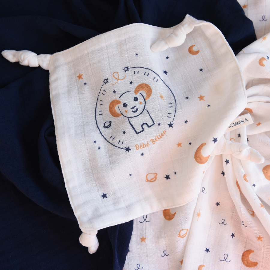 Tom & Mila Né entre le 21 mars et le 19 avril, Bébé Bélier est audacieux, énergique et courageux. En avant pour l’aventure ! Bébé Bélier n’a pas fini de vous en faire voir de toutes les couleurs. Il relèvera chaque nouveau défi avec entrain. Cadeau de naissance original, le coffret astro. Utile : le coffret comprend deux langes (on n’en a jamais assez) et un doudou pouvant s’accrocher à la tétine ou à l’anneau de dentition. Beau : les dessins ont été réfléchis pour adapter les signes du zodiaque au monde de nos Mini.e.s Certifiés Oeko-Tex, les produits respectent…