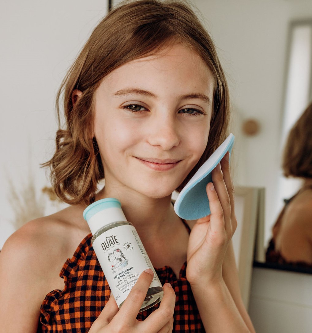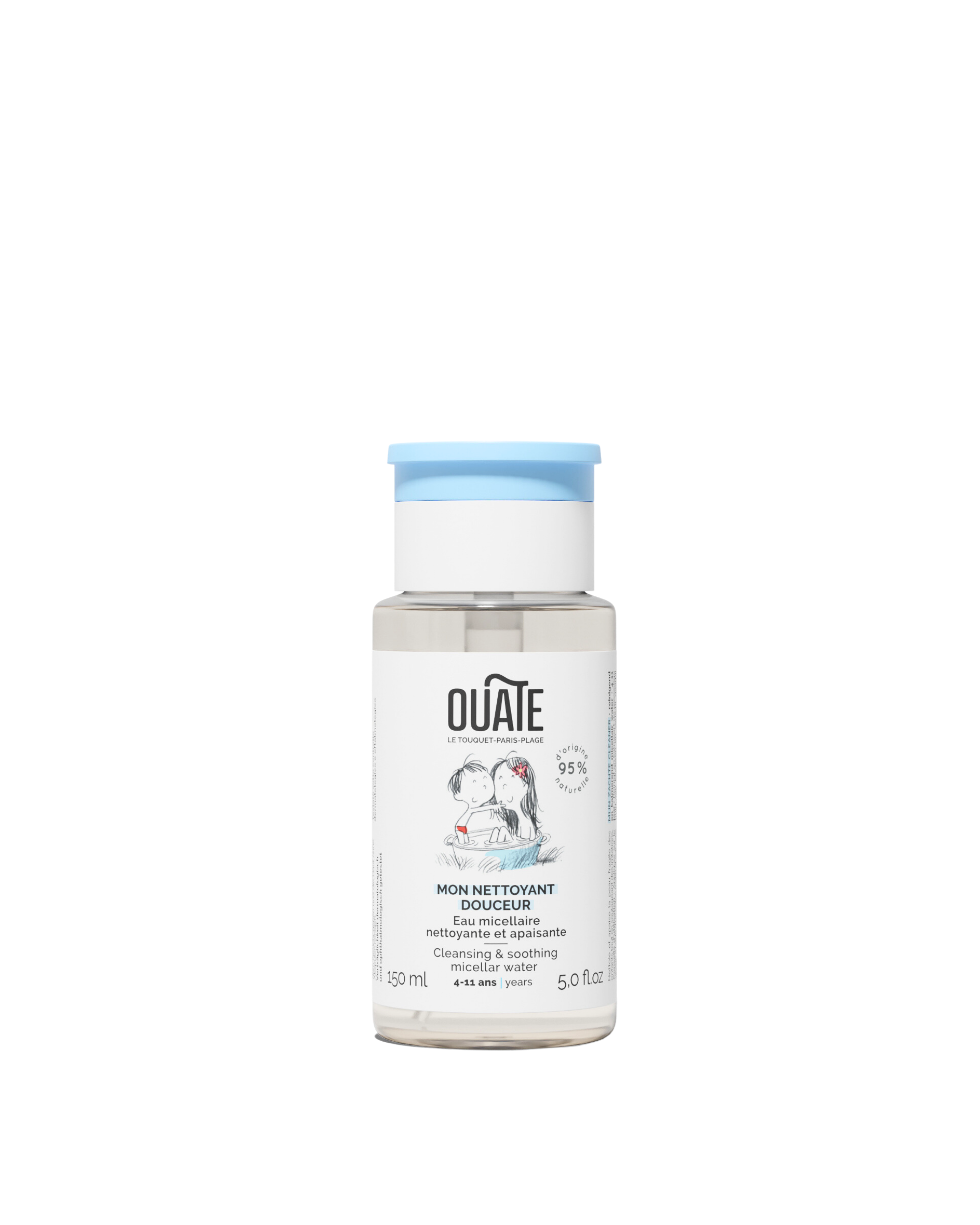 OUATE La meilleure façon d’apprendre à nos enfants à prendre soin de leur hygiène est de leur permettre de le faire de manière autonome. La peau de nos enfants est constamment exposée aux saletés et à la pollution, il est donc important pour eux d’apprendre à se nettoyer le visage. Mon nettoyant douceur nettoie, hydrate la peau et l’apaise instantanément. Flacon conçu avec l’aide d’ergothérapeutes pour qu’il soit parfaitement adapté à la motricité des enfants, il suffit d’appuyer sur le pot-buzzer pour obtenir la dose parfaite de produit, un vrai jeu d’enfant !
