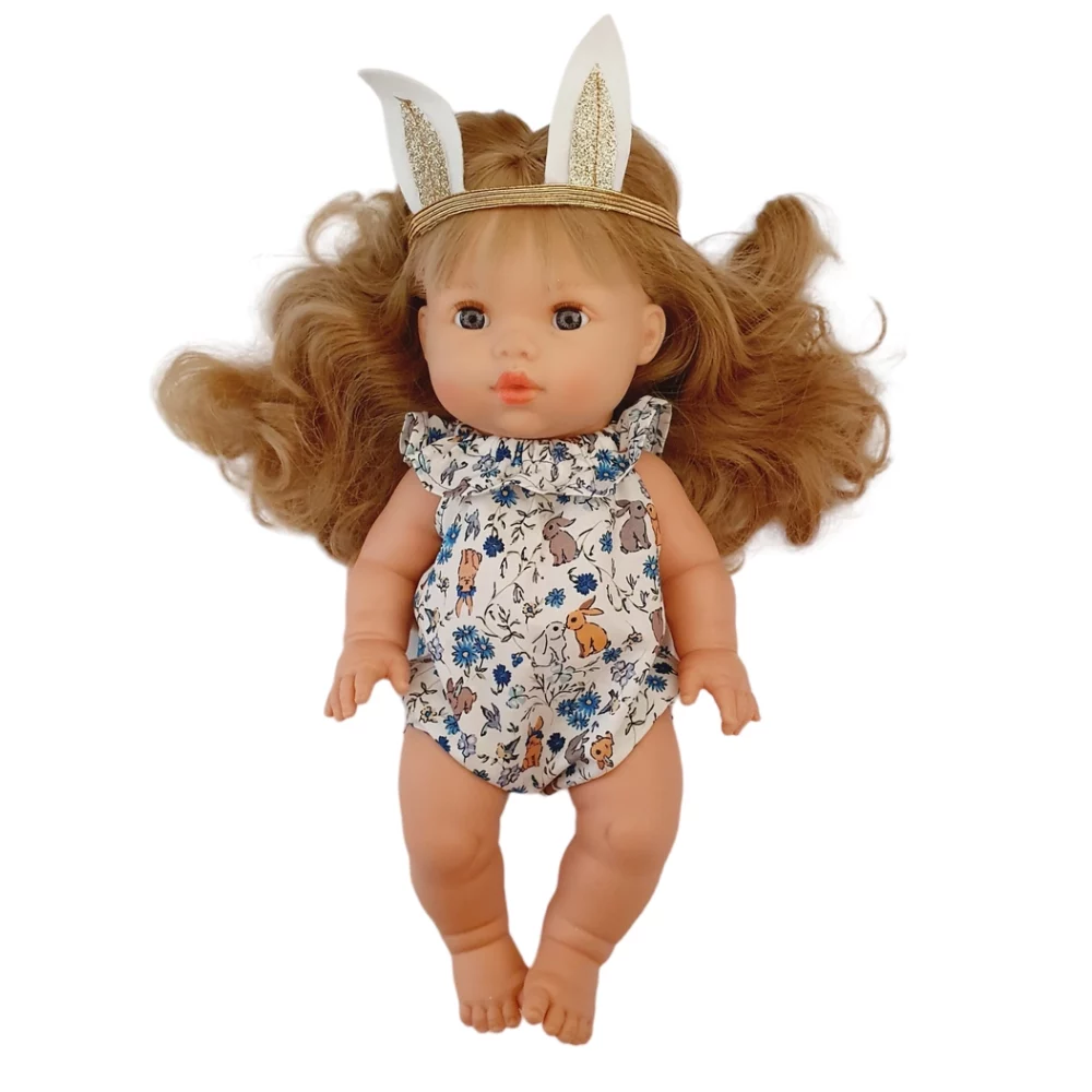 Oreilles de lapin – Maman Poule & Papa CoqUn accessoire tout doux pour les poupées câlines ! Ces jolies oreilles de lapin, à glisser sur la tête des poupées Minikane ou Paola Reina, transforment chaque moment de jeu en une aventure pleine de tendresse. Un petit détail qui fait toute la magie.