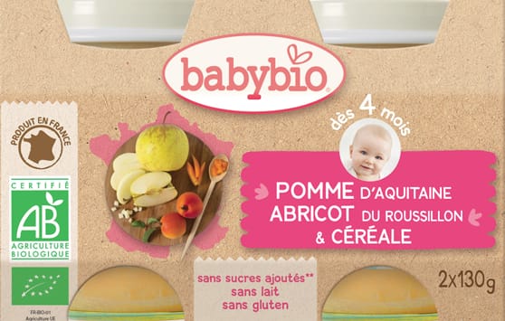 Babybio sélectionne avec soin l’origine géographique de ses ingrédients en privilégiant les producteurs locaux (idéalement Sud-Ouest, France ou pays limitrophes). Les origines indiquées sur les produits sont amenées à évoluer du fait de leurs exigences dans le choix des producteurs et de la difficulté d?approvisionnement en matières premières biologiques.