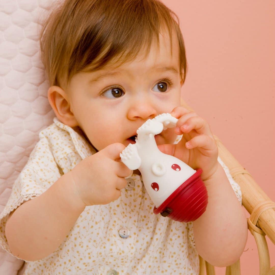 Parce que cette pieuvre de dentition soulage les douleurs liées aux poussées dentaires (grâce à sa matière silicone et ses picots) Parce qu’elle est facile à prendre en main dés le plus jeune âge Parce qu’elle se transforme en balle Parce qu’elle se lave facilement Parce que son emballage est sympa (idéal pour un cadeau par exemple)