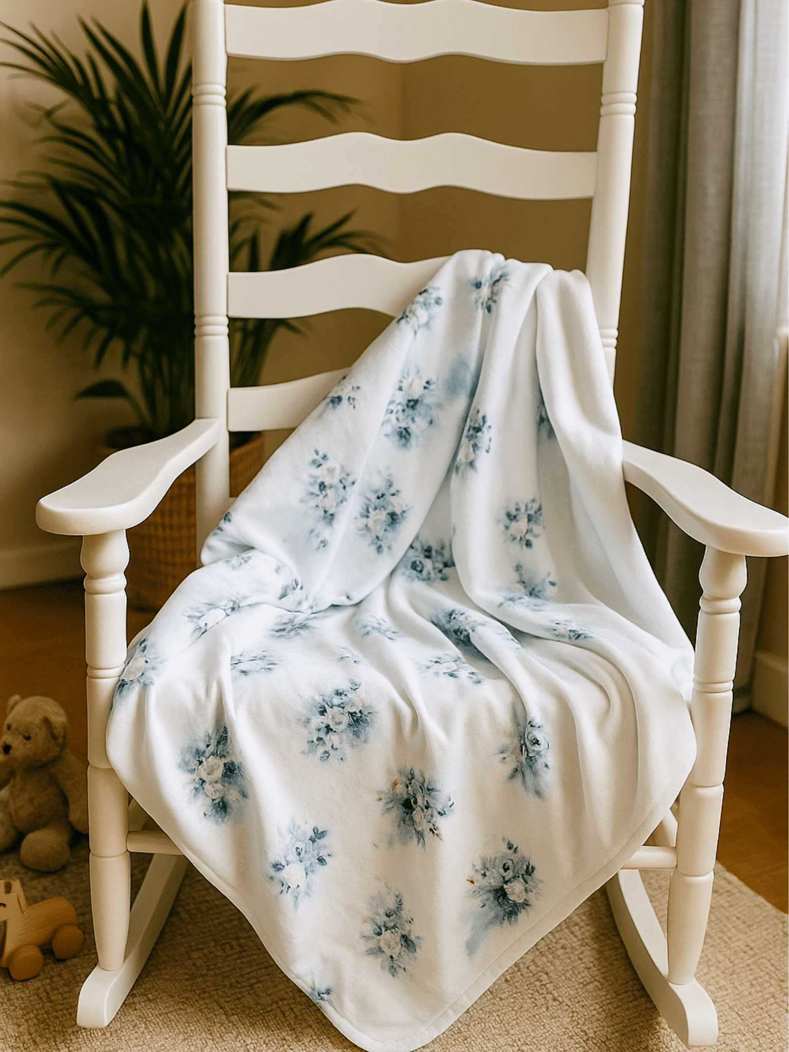 🌿 Plaid d’été “Fleur bleues” – Motif exclusif Les Créa de Jenni