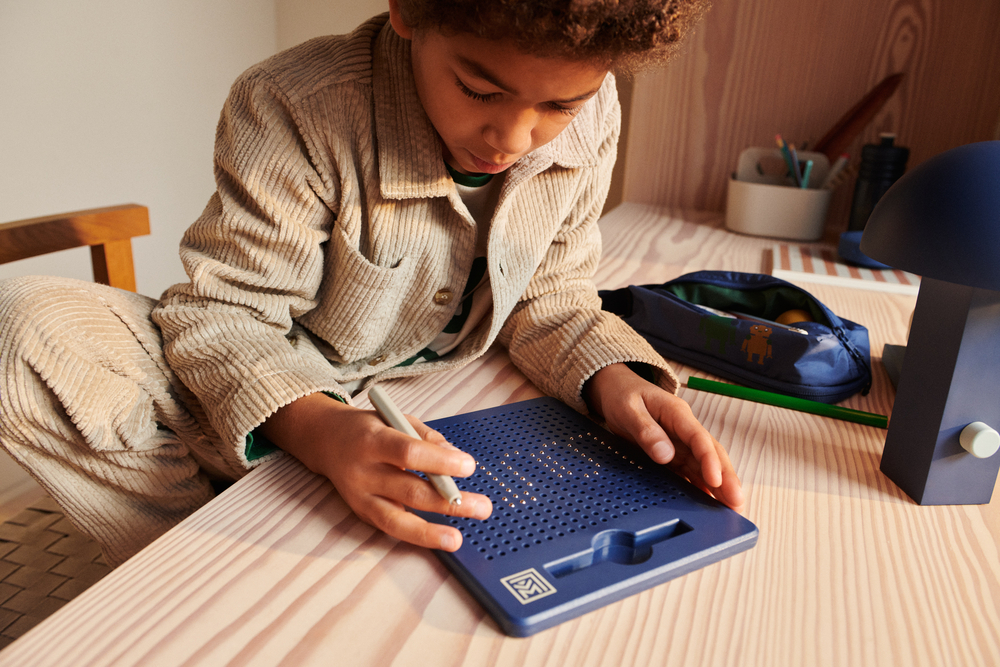 LIEWOOD Le plateau magnétique est un jeu parfait pour développer la motricité fine de vos enfants. avec le stylo magnétique il faudra attirer les petites billes pour les ramener à la surface et les repousser avec le doigts. On apprend donc à tenir un stylo et à être habile de ses doigts. Votre enfant pourra alors réaliser différents motifs et développer sa créativité à l’infini. Se transporte facilement pour occuper vos enfants en voyage, chez le médecin, au restaurant … Dès 3 ans