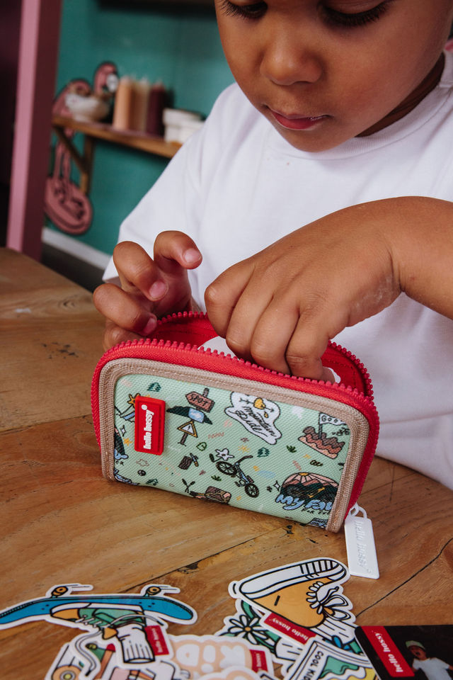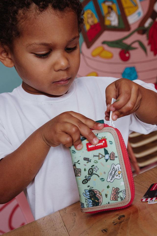 HELLO HOSSY Vos Enfants vont adorer ce porte monnaie pour garder leurs sous. Argent de poche, argent de la petite souris ou cadeau ils et elles auront enfin de quoi le transporter pour faire leurs achats perso. La fermeture zippée permet de ne pas perdre de pièces. Il dispose de deux grands compartiments. Fabriqué à partir de bouteilles plastique recyclées.