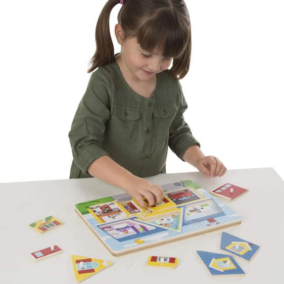 Par exemple, le puzzle sonore de la maison permet aux enfants d’entendre : un réveil qui réveille, un enfant dans la chambre, le moteur bruyant d’une auto qui démarre dans le garage, un repas qui grésille dans la cuisine, la machine à laver qui tourne… des sons réalistes à découvrir.