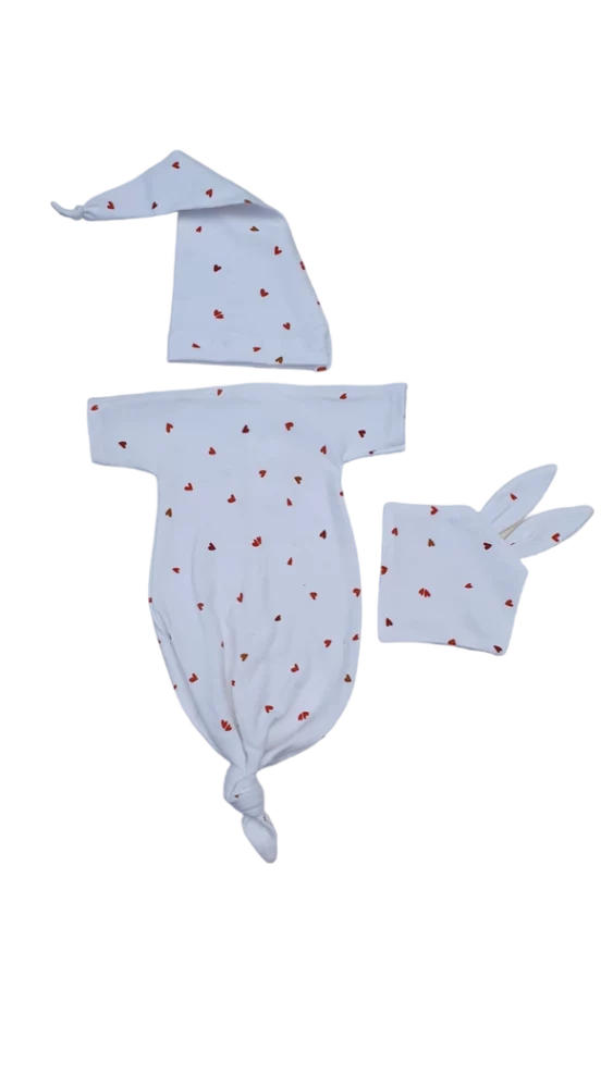 Pyjama noué, bonnet de nuit et doudou – Maman Poule & Papa Coq