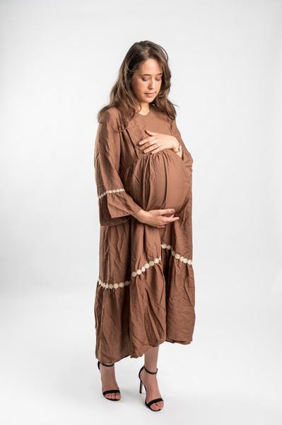 Robe de Grossesse et d’allaitement Bohème – Cacao & Dentelle